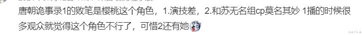 是以《唐朝诡事录》之时,樱桃的口碑并不算好。不雅众的差评,也继续。