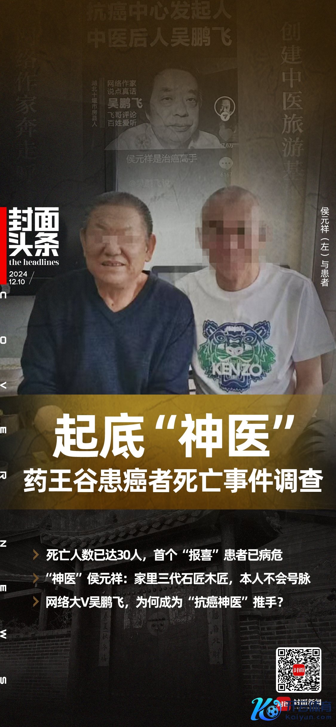吴鹏飞自认是侯元祥被人人知谈的“最大元勋”。网友们也将其视作侯元祥“神医”形象的推手,但这些评价者中,有拥趸,也有质疑者。质疑者合计,无论侯元祥是不是真“神医”,吴鹏飞要么是同谋,要么是片面诓骗噱头引流、营利。