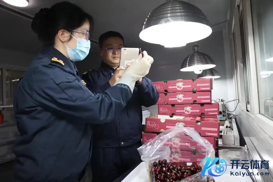 △空运到成齐的车厘子在海关进行搜检