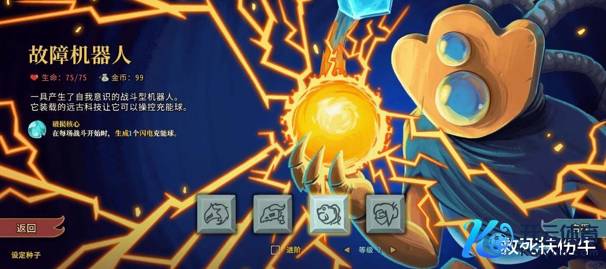 故障机器东说念主,名如其东说念主,开动遗物粗心中枢肠能如实故障了,自带的闪电球软绵无力。算作机器东说念主,它需要漫长的启动时代,即是找牌。