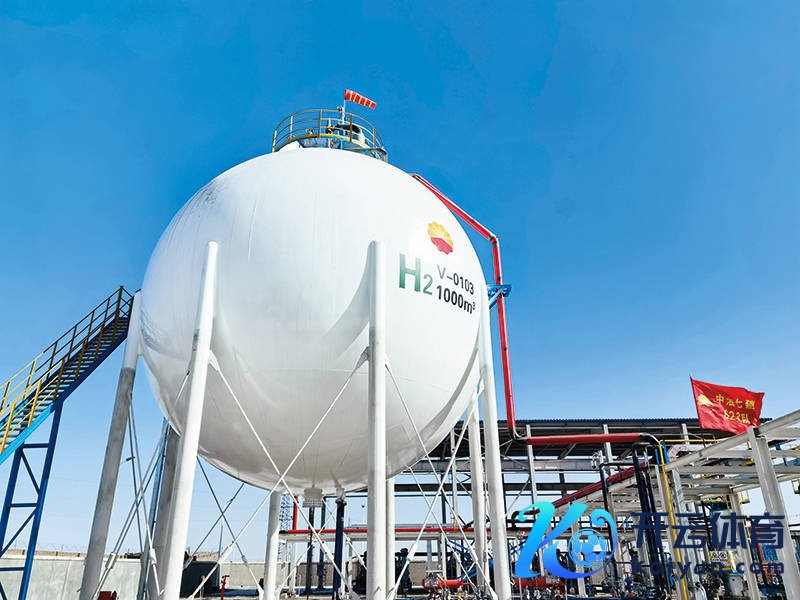 中国石油玉门油田分公司建成的可再生能源制氢示范名堂储氢罐 新华社发(玉门油田供图)大限制发展仍需爬坡过坎